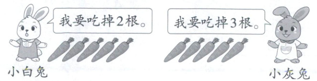 5. 小白兔和小灰兔分到了同样多的萝卜,谁剩下的萝卜多?(