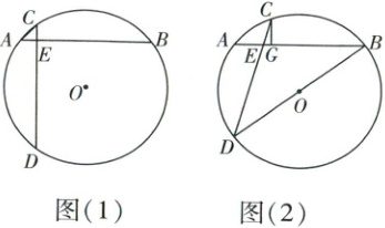 (2) 如图(2),若四边形ABCD是矩形,点F恰好落在CD上,过点F作$FH\perp AB$于点H,交BE于点O.若$AE = 2$,$HO:OF = 3:5$,求AB的长.