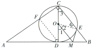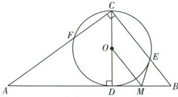 (2025南充)如图,$Rt\triangle ABC$中,$\angle ACB = 90^{\circ}$,$CD\perp AB$于点$D$,以$CD$为直径的$\odot O$交$BC$于点$E$,交$AC$于点$F$,$M$为线段$DB$上一点,$ME = MD$,连接$OM$.