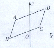 如图,在$□ ABCD$中,有$\begin{cases} x_A + x_C = x_B + x_D \\ y_A + y_C = y_B + y_D \end{cases}$.