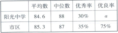 阳光中学为了解本校参赛学生科技素养测评情况,整理了这次活动本校及所在市区参赛学生测评总成绩的相关数据,部分信息如下: