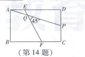 14. 如图,已知矩形ABCD,AB = 4,BC = 6,P是边CD的中点,E是边AD上的动点,线段EF分别与BC,AP相交于点F,Q. 若∠FQP = 45°,则EF的长为