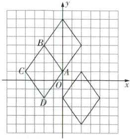 如图,已知菱形$ABCD$的顶点在方格纸的格点上,其中$A$,$B$,$C$的坐标分别为$(0,1)$,$( - 2,4)$,$( - 4,1)$.该菱形经过中心对称得到它右侧的菱形(顶点均在格点上).