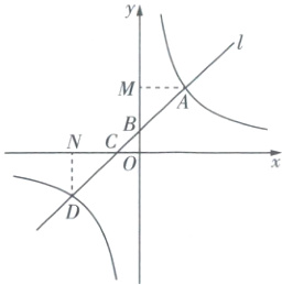 $\therefore$联立$\begin{cases} y = x + 1, \\ y = \frac{6}{x} \end{cases}$解得$\begin{cases} x_{1} = -3, \\ y_{1} = -2, \end{cases} \begin{cases} x_{2} = 2, \\ y_{2} = 3, \end{cases}$$\therefore$点$D$的坐标为$(-3, -2)$. (4分)