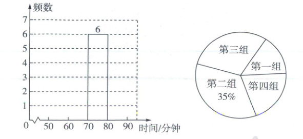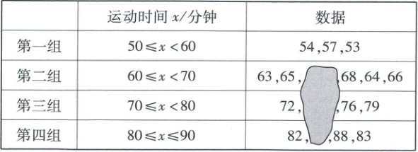 个,若第四组学生的平均运动时间为84.5分钟,求第四组中被盖住的数据;(3)扇形统计图中第四组的圆心角度数是