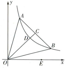 如图,在平面直角坐标系$xOy$中,已知$\triangle OAB$为等边三角形,$AB = 6$,点$C$为$AB$的中点,反比例函数$y=\frac{k}{x}(x > 0)$的图象经过$A$,$B$两点,且与$OC$交于点$D$,$\angle BOE = 15^{\circ}$,点$B$的横、纵坐标之和为$3\sqrt{6}$.