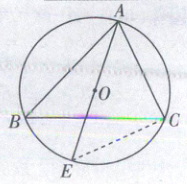 如图,连接 EC AE是△ABC的外接圆的直径,∠ACE = 90°(依据:直径所对的圆周角是直角)。又∠BAE = 25°,且同弧所对的圆周角相等,所以∠BCE = ∠BAE = 25°,则∠ACB = 90° - 25° = 65°。