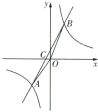 (3)画出函数$y_{1},y_{2}$的图象,设直线 AB 与 x 轴交于点 C,如 图所示.
