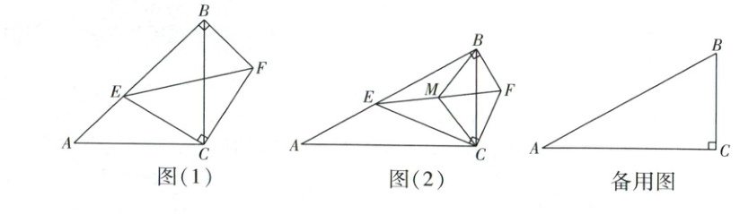 $\triangle ABC$是直角三角形,$\angle ACB = 90^{\circ}$,点$E$是斜边$AB$上的动点,连接$CE$,过点$C$作$CE$的垂线,过点$B$作$AB$的垂线,两条垂线交于点$F$,连接$EF$.