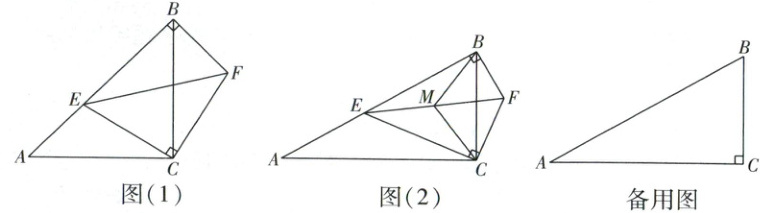 ∴ $BM = \frac{1}{2}EF,CM = \frac{1}{2}EF$ (依据:直角三角形斜边上的中线等 于斜边的一半 ),
