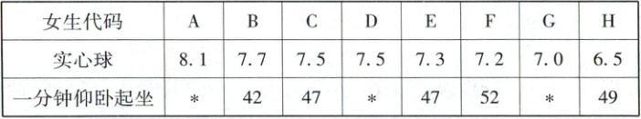 ②该年级某班体育委员将本班在这次抽样测试中被抽取的 $8$ 名女生的两项成绩的数据抄录如表所示:
