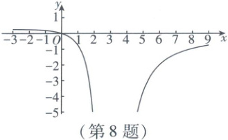 8.B 由分式有意义的条件可知,$x - b \neq 0$,$\therefore x \neq b$。结合函数图象,可知$b > 0$。当$x = 1$时,$y = \frac{a}{(1 - b)^2} < 0$。又$\because (1 - b)^2 > 0$,$\therefore a < 0$,故选B。