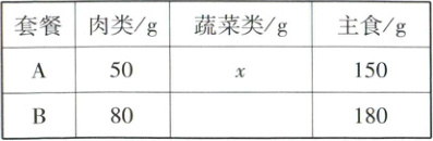 某饭店有A,B两种午餐套餐,套餐中肉类、蔬菜类、主食含量如下表(不完整):