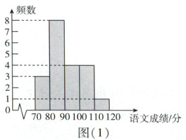 a. 这20名学生的语文成绩的频数分布直方图如图(1).
