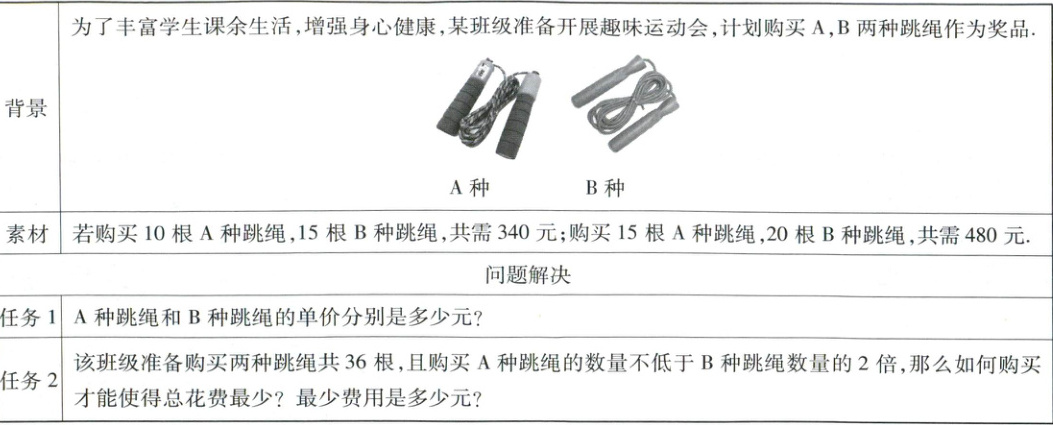 (2)设购买A种跳绳a根,则购买B种跳绳(36 - a)根。