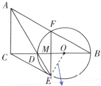 ∵D是$\overset{\frown}{EF}$的中点,且DB是⊙O的直径,