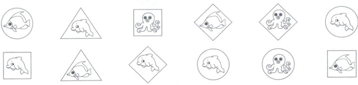 2. 先按卡片的形状分一分,再涂一涂、填一填。(6分)