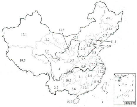 [北京大学附属中学2025高一期末]下图为2010—2020年我国各省级行政区人口增长率(‰)分布图(港澳台地区数据暂缺)。据此完成下面小题。