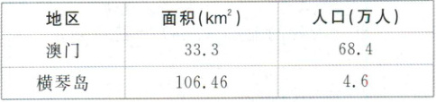 [辽宁省实验中学2024高一期中]广东省横琴岛位于澳门西侧,与澳门隔河相望。2024年3月1日,分线管理封关运行正式实施,推动琴澳一体化发展。下表为2023年两地面积、人口统计表。据此完成下面小题。