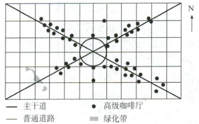 5. 导致该城市中心区基本无高级咖啡厅分布的主要因素是(