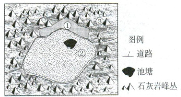 6.C【解析】本题考查乡村土地利用类型。根据材料“云贵高原喀斯特地貌区的山间盆地……耕作区”可知,②应为耕地;读图可知,③位于石灰岩峰丛地区,应为林地;①主要位于道路沿线,接近耕地,应为住宅。综上所述,C正确,A、B、D错误。