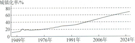 [河南驻马店高级中学2025高一期中]城镇化是集人口转变、产业结构升级、现代文明进步于一体的综合性过程。下图示意我国城镇化率变化情况。据此完成下面小题。