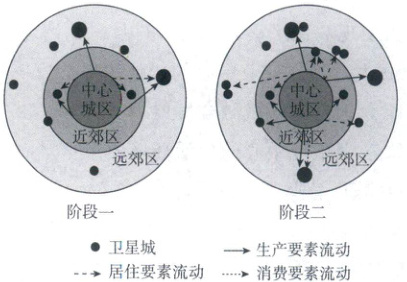 1. 城镇化进入郊区化阶段时,郊区的人口(