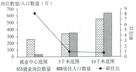 9. 该城市人口职住分离现象显著,主要原因是就业中心(