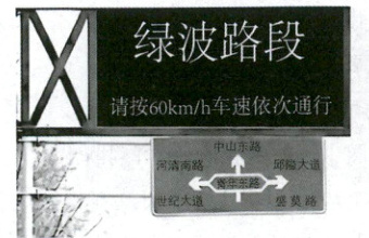 [安徽江南十校联盟2025高一联考]绿波带就是在指定的交通线路上,车辆按照绿波速度(保证到达下个路口时刚好是绿灯的最佳速度)匀速行驶,信号控制机根据路段距离调整信号灯,以确保该车流到达每个路口时,正好遇到绿灯。我国某地图软件“绿波车速”功能现已覆盖全国,最大程度助力用户实现一路绿灯,避免用户急加速、急减速。下图为我国某地绿波带指示牌。据此完成下面小题。
