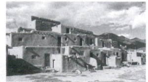 [海南中学2025高一期末]美国新墨西哥州主要为热带沙漠气候和温带大陆性气候,温暖干燥,昼夜温差大。当地印第安人的土坯房(下图)历史超千年,属多层多家的集合式住宅,由晒干的泥土砖堆砌而成。起初土坯房无门窗,需借助梯子从屋顶入口进出。据此完成下面小题。