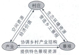 [湖北 2023·1~3]“产村景”一体化融合是我国乡村振兴过程中形成的一种具有地域特色的发展模式。下图示意该模式中“产、村、景”各要素之间的互动关系。据此完成下面小题。