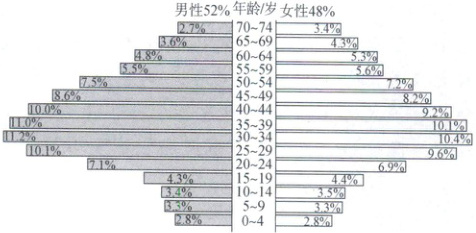 注:此处75岁以上的年龄组(男性占4.1%,女性占5.8%)被省略。