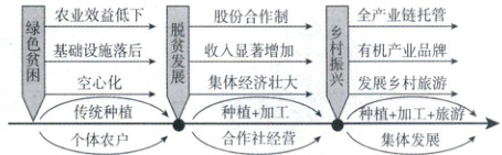 (2)经济方面:通过土地入股,耕地小块并大块,推行机械化耕作,提高生产效率,降低生产成本,壮大了集体经济;改变传统种植方式,发展生态农业,打造农业品牌,提高农产品附加值;生态农业与加工业、休闲旅游业等产业融合,实现全产业链发展。(任答两点得4分)社会方面:增加就业机会,拓宽村民收入来源,促进人口回流,缓解乡村空心化问题;加强交通等基础设施的建设,促进人口、物资、产品等要素的流动。(任答一点得2分)生态方面:通过发展生态产业,既提高了村民收入,又维护了生态系统的良性发展。(2分)