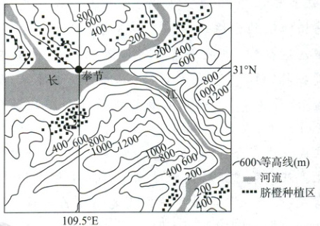 [中国人民大学附属中学2025模拟检测]重庆市奉节县是我国脐橙主产区之一。三峡水库蓄水后,奉节脐橙品质有所提升。下图示意奉节周边部分脐橙种植区分布。据此完成下面小题。