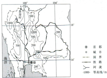 [山东省实验中学 2025 高一期中]茶房村是泰国著名的茶叶生产基地(下图),生产的酸茶主要销往泰北山区,红碎茶主要销往曼谷及周边地区。20 世纪 90 年代,茶房村建立了几家大型茶叶加工厂,使茶叶生产从分散走向集中。据此完成下面小题。