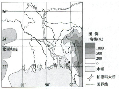 [湖北鄂州 2025 高一月考]拆船业是一项既“环保”又容易污染环境的产业,起源于 20 世纪初的欧美地区,历经数次产业转移后,目前孟加拉国是世界上最大的拆船国。该国的拆船工厂集中在吉大港附近的沙滩带上,普遍利用当地独特的自然条件,采取“冲滩”方式运输废船。周围数百家小型炼钢厂密集分布。下图示意吉大港位置。