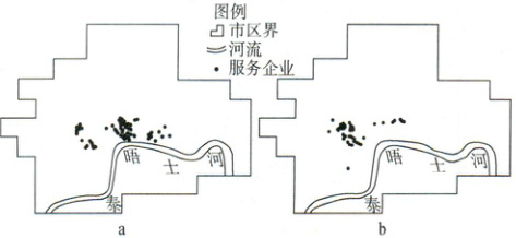 [江苏淮安涟水一中 2025 高一期中]法律服务和会计服务是现代都市经济发展不可或缺的生产性服务业。伦敦是世界金融中心之一,大型企业众多,市区的法律服务业和会计服务业发达,主要企业分布格局具有相似之处。下图示意伦敦市区法律服务业(图 a)和会计服务业(图 b)的主要企业空间分布。据此完成下面小题。