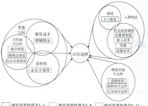 [湖北十堰 2025 高一月考]广州是我国重要的中心城市和国际商贸中心,商业活跃度高。下图示意广州近年来迅速增长的某服务设施区位选择的影响因素。据此完成下面小题。