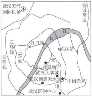 (1)本题考查工业区位因素。读图联系已学知识,东湖高新区位于武汉三环线内,基础设施建设较为完善,临近武汉大学城、武汉创意天地,环境质量相对较高,地理位置优越,有利于电子信息产业的发展;由材料可知,武汉东湖高新区于1988年便已创建成立,目前是我国最大的光电子信息产业集群基地,已形成完整的光电子信息产业链,产业基础雄厚;武汉拥有武汉大学、华中科技大学等众多高校及科研院所,为光电子产业提供了强大的技术支撑和人才储备;读图可知,“中国光谷”临近天河国际机场、绕城高速公路等,交通较为发达,便于光谷原材料、产品及人才的流动;材料提到,近年来,以国家存储器基地为战略牵引,多家芯片产业链相关企业开始向“中国光谷”集结,一座“芯片小镇”正在崛起,说明“中国光谷”的发展得到了政策的大力支持。【区位分析类】
