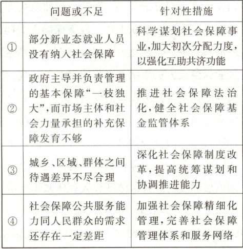 12. 目前,我国基本建成世界上规模最大的社会保障体系,但随着我国社会主要矛盾发生变化,城镇化、人口老龄化、就业方式多样化不断加快,我国社会保障体系仍存在着不足。下表中的问题或不足与针对性措施对应合理的是(