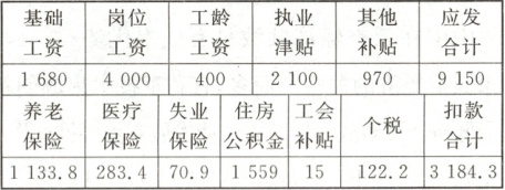 15. 下表是某职工 1 月份的工资条(单位:元)。
