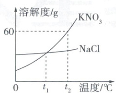 t₁℃时,KNO₃和NaCl溶解度相等,A(√)