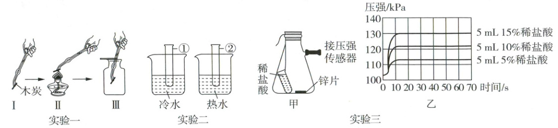 (1)实验一:木炭在氧气中燃烧的实验,比较步骤Ⅱ和Ⅲ木炭燃烧的情况,得出影响燃烧的因素是