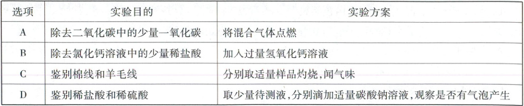 21. 设计实验方案是科学探究的重要环节,下列实验方案能达到实验目的的是(