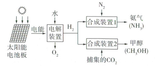 。从反应物分析,用合成装置2生产甲醇比用石油为原料生产甲醇有利于实现“双碳”目标,原因是可消耗捕集的CO₂,减少碳排放