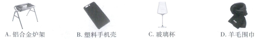 9 B 有机合成材料简称合成材料,包括:合成纤维、合成橡胶、塑料。选项中,铝合金属于金属材料,玻璃属于无机非金属材料,羊毛属于天然材料。