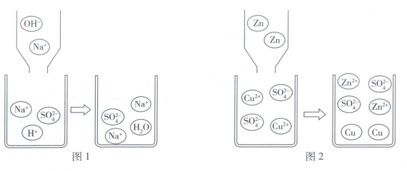 (1)②从图2可知,该反应的微观粒子在反应前后的变化是:反应前存在锌原子、硫酸根离子、铜离子,反应后存在锌离子、硫酸根离子、铜原子,则参与反应的微观粒子是$Zn$、$Cu^{2+}$。