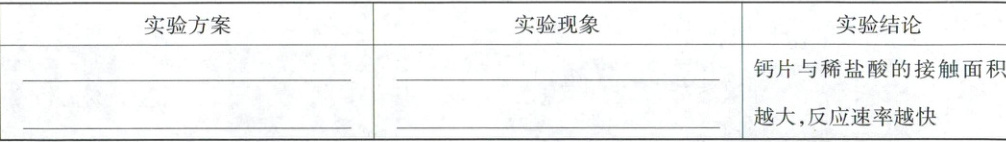 实验结论:钙片与稀盐酸的接触面积越大,反应速率越快。
