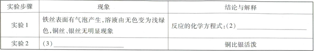 (3)铜丝表面有银白色物质生成,溶液由无色变为蓝色