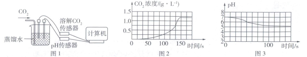 二氧化碳能溶于水且部分与水发生反应。地球表面70%以上的区域被水覆盖,二氧化碳能对自然界的水产生多大影响呢?小亮借助数字化技术对此进行了定量探究(图1),收集数据如图2、图3所示。